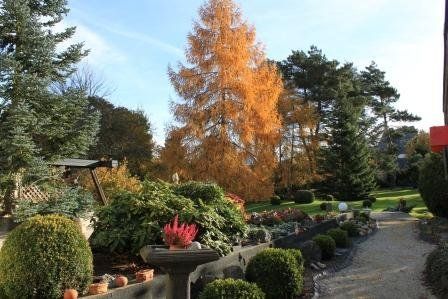 Blumen, Sträucher, Bäume in einer Gartenanlage können, wenn man Interesse an den Wundern der Natur hat, Glückshormone bringen.