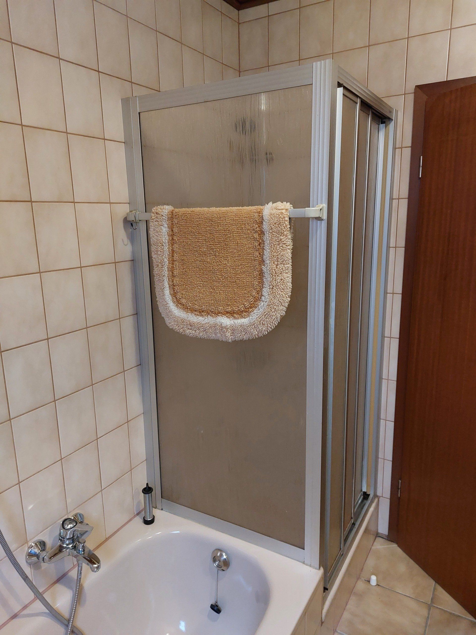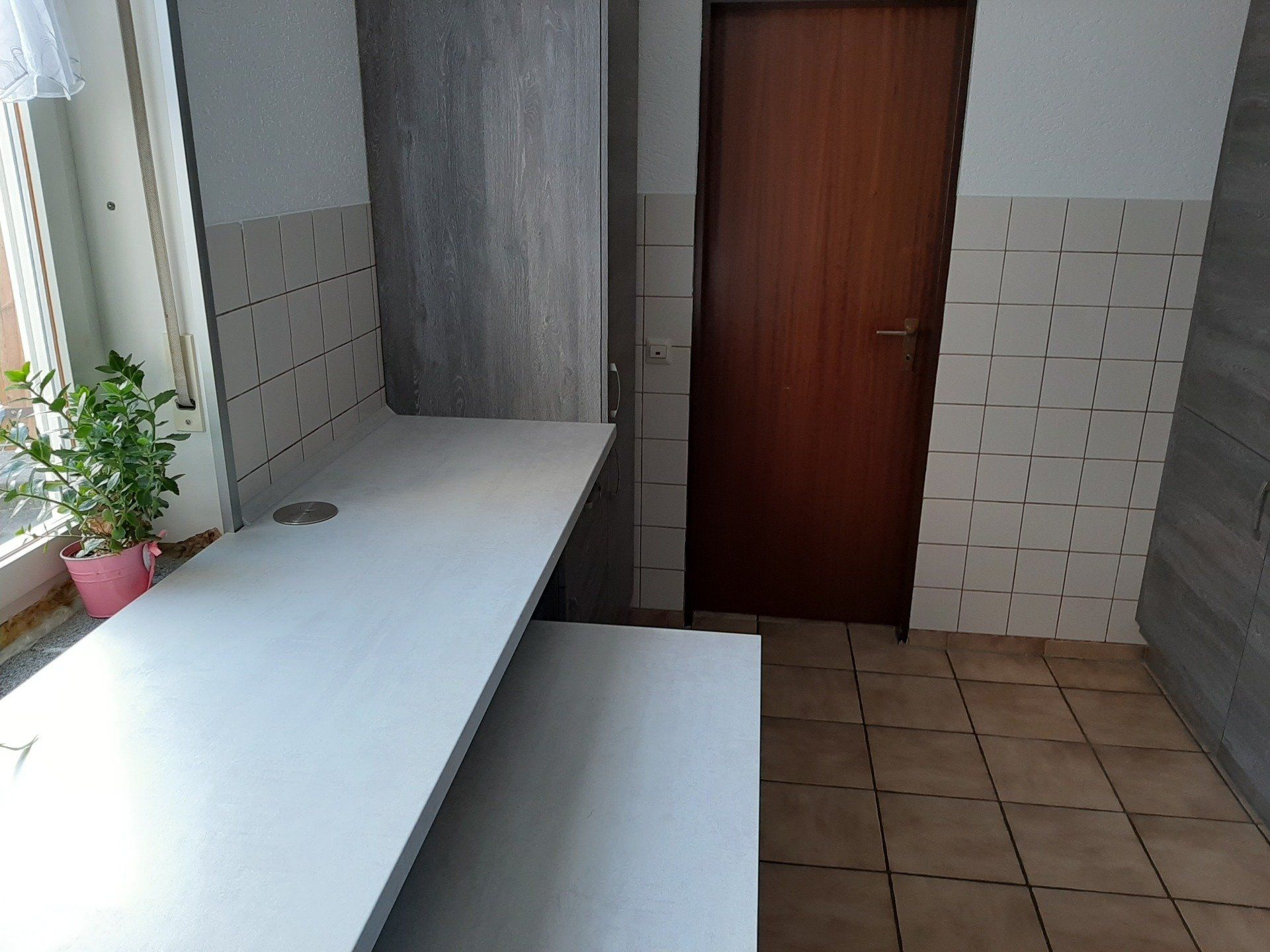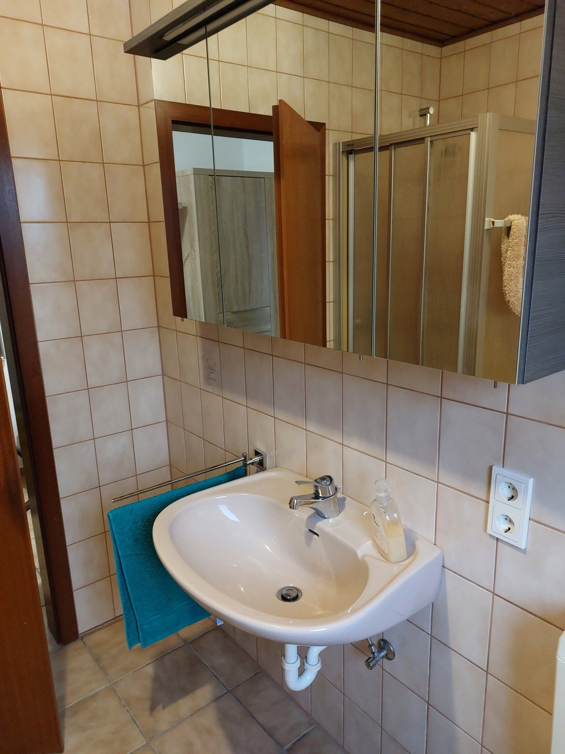 * Im Waschraum steht eine neue Waschmaschine.